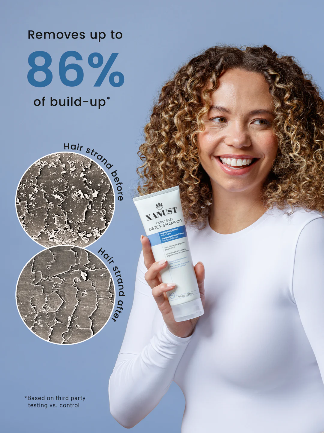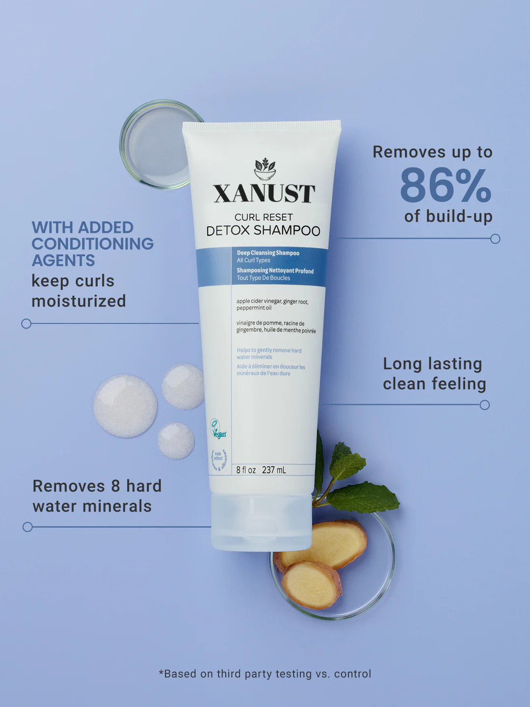 A perfect blend of nature and science. This gentle detoxifying shampoo is formulated with Apple Cider Vinegar, Ginger Root, Peppermint Oil, and gentle surfactants, which form micelles to sweep away build-up. It is paired with a gentle chelating agent that binds to metal ions and simply rinses away impurities. The result, healthier-looking hair with a cleaner scalp, and the removal of 8 minerals, including copper and calcium, leaving you with refreshed and revived curls. Thanks to the added conditioning agents, our new formula allows you to clarify in one step without hair feeling stripped and dry.